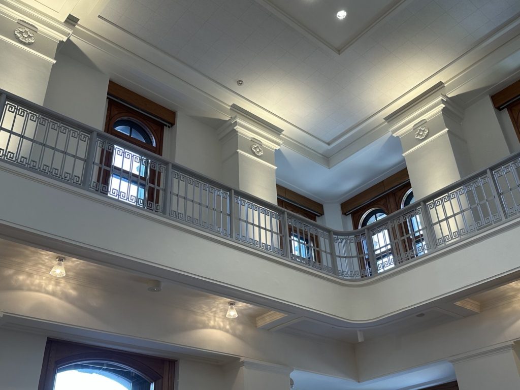 内部吹抜 戦災で大きく姿を変えたと思われるが、2階の柱をよく見ると柱頭に装飾が 戦後復旧で施されたものか