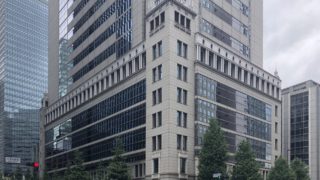 左右対称の肩肘張った構成はいかにも明治の銀行建築という感じだが、少々物足りなさを覚えるのが屋根。実は創建時は立派な屋根やペディメント (下写真の2階中央部上に乗っかる三角形の部分)が乗っかっていたのだが、戦災で失って元に戻されることなく今に至るというわけだ。